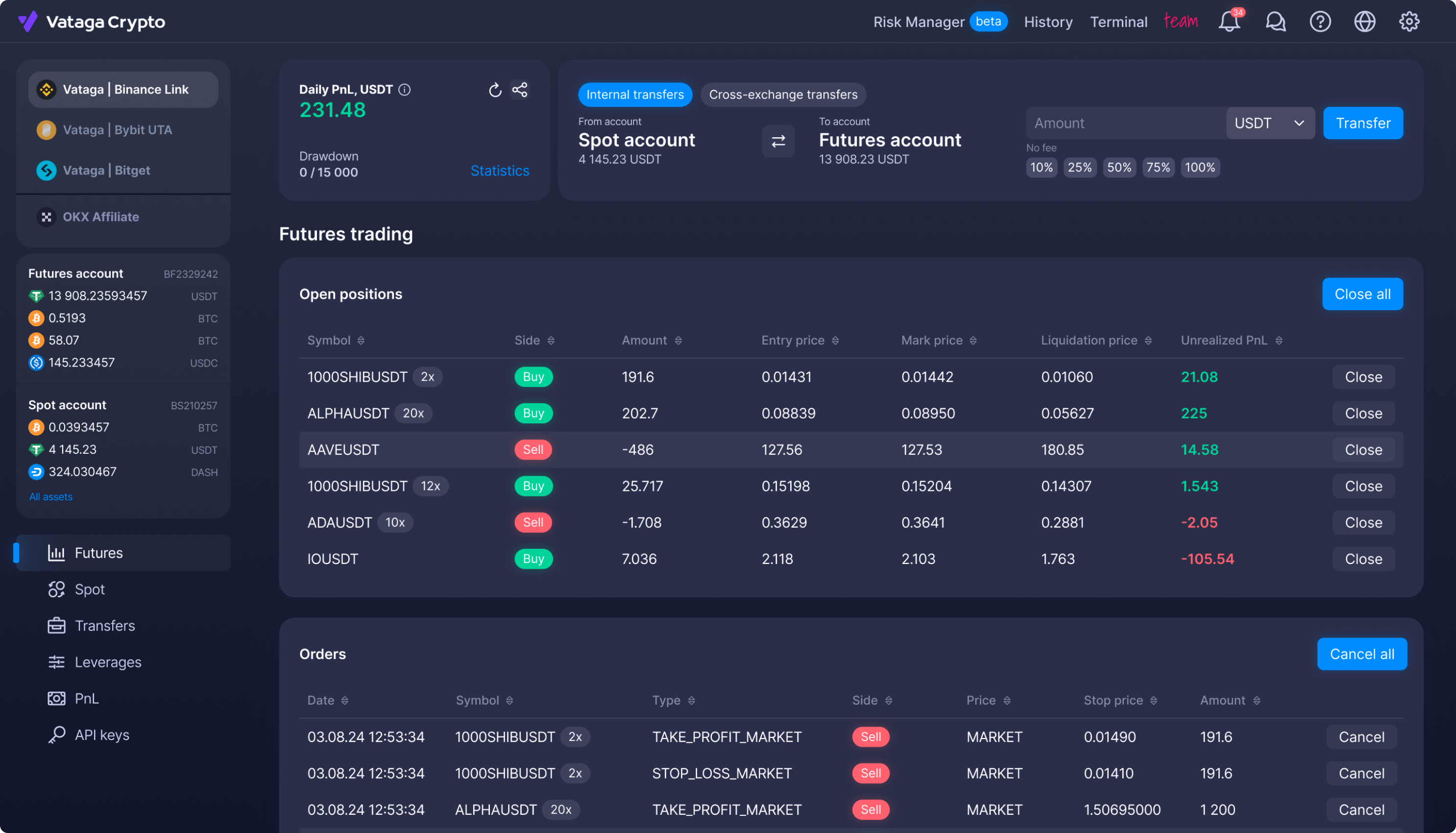 Open positions and orders monitoringMonitor your open positions and open orders, minimize unexpected risks
