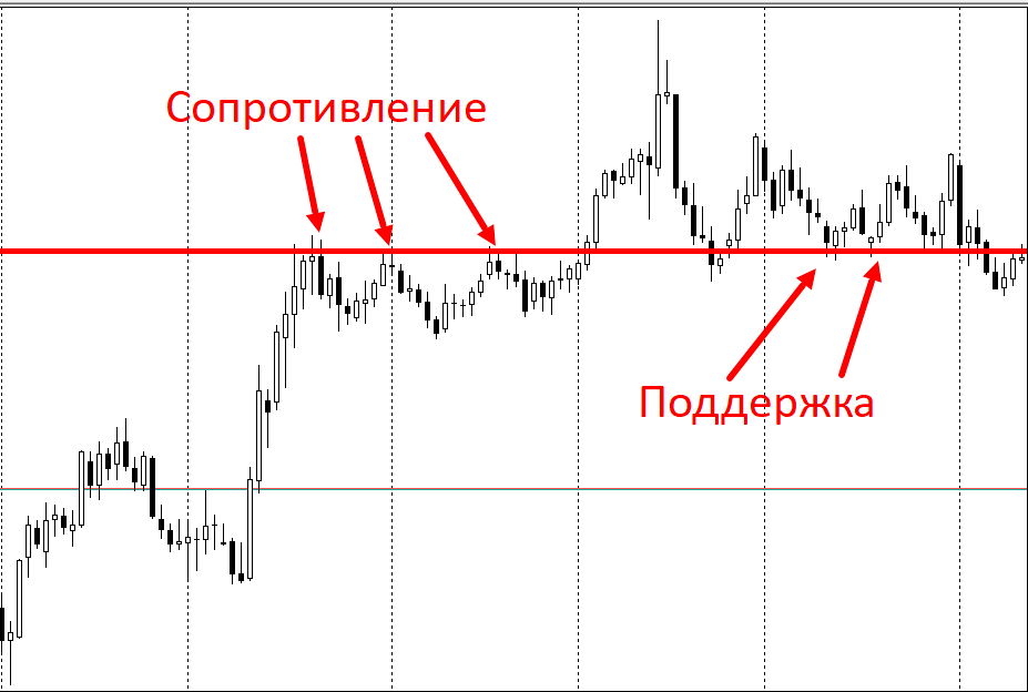 - Сопротивление — область, где продавцы брали верх над покупателями.