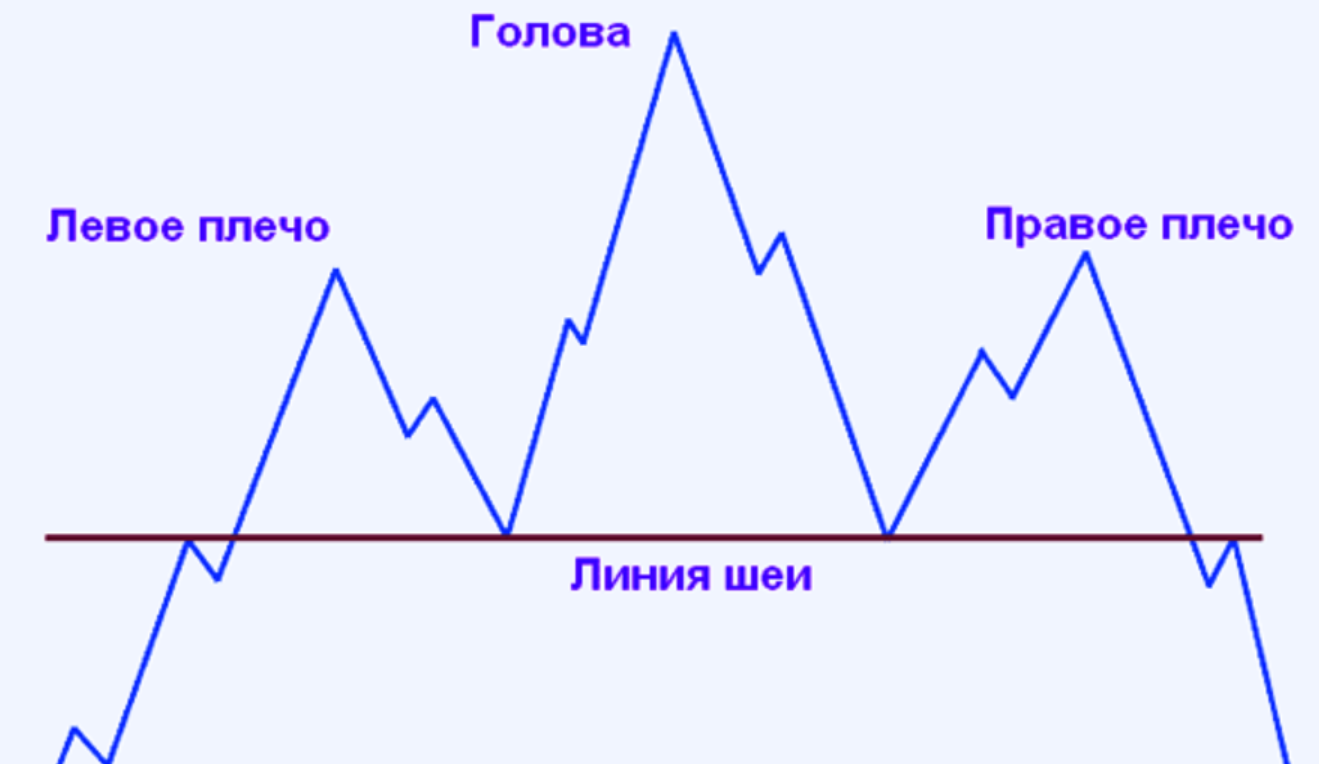 Фигура “Голова и плечи” представляет собой три ценовых пика, из которых центральный (голова) заметно выше двух боковых (плеч). Эта модель отражает последовательное ослабление покупательского импульса и постепенную смену инициативы.